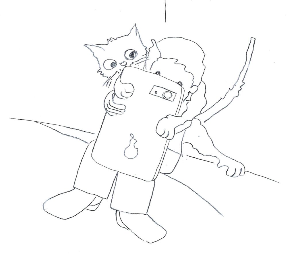 Die Protagonisten der Geschichte sind Balz und seine rote Katze Pyn. Balz‘ Lieblingsbeschäftigung ist Gamen auf dem Handy. Pyn fühlt sich vernachlässigt und reisst kurzerhand von zuhause aus. Das Telefon von Balz nimmt Pyn mit, er will dazugehören. Mit dem Handy organisiert sich Pyn seine Reise, nebenbei spielt er das game von Balz. Doch die Reise wird bedrohlich, aus dem Spiel wird ernst. Durch lebensgefährliche Abenteuer in der realen Welt verliert Pyn in seinem Computergame ein Leben nach dem andern. Als er nur noch ein Leben hat wird ihm bewusst, wie sehr er seinen Freund Balz vermisst. Die vier kleinen Katzenfreunde, die Pyn auf seiner Reise kennen gelernt hat, trösten ihn, denn er hat schrecklich Heimweh. Die sinnliche Welt der Katzen, das Lauschen ihrer Geschichten, der Katzengesang, der Duft der lauwarmen Milch, der Brotbrocken und die Wärme ihres Fells beim Kuscheln bringen Pyn zur Besinnung. Die vier kleinen Katzenfreunde begleiten Pyn heim, sie kennen den Heimweg in- und auswendig, sie brauchen kein Handy. Als Pyn mit seinen vier Katzenfreunden zuhause angesaust kommt, fällt Balz vor Schreck beinahe vom Stuhl. Pyn und Balz reden, reden und reden… Eines ist sicher, die nächste Reise werden sie gemeinsam unternehmen.